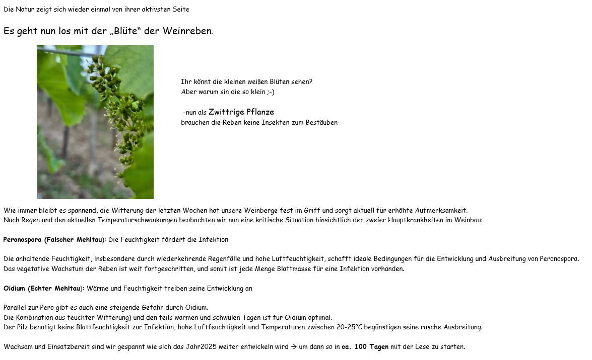 es geht nun los "die Blüte " der Weinreben
